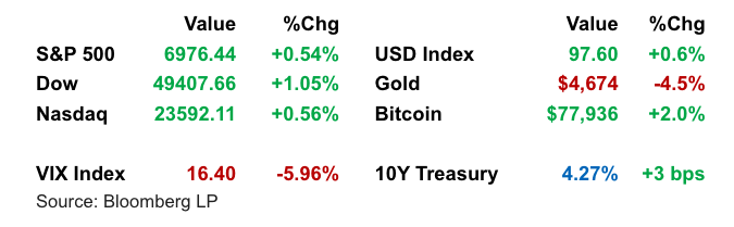 Bonds Drop as Rate Cut Bets Repriced: Treasuries sold off, pushing the 10-year yield to 4.28%, as traders dialed back near-term rate cut expectations. The stronger manufacturing report and comments from Fed officials, including Raphael Bostic who sees no cuts in 2026, signaled the Fed may hold steady longer than markets anticipated. Futures now price the next cut for July.